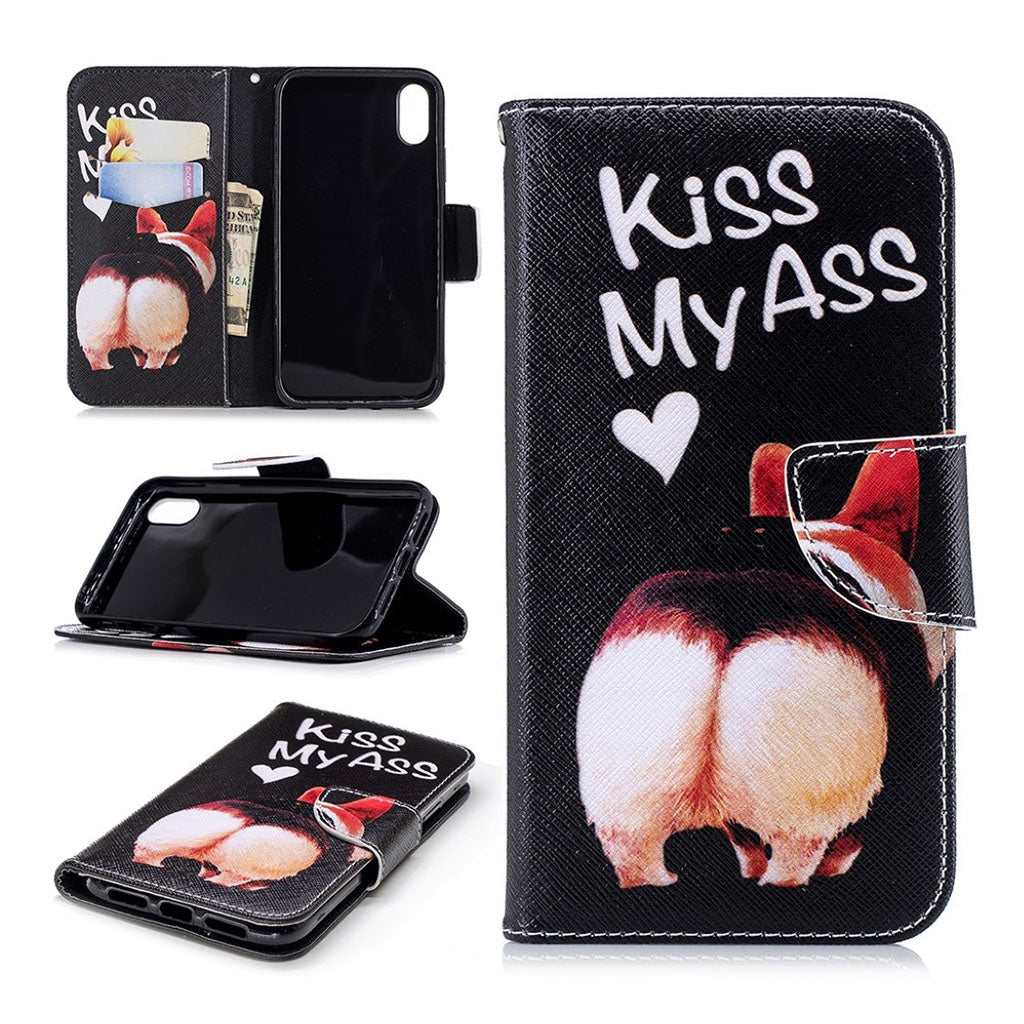 Pattern printing leather magnetic wallet stand case for iPhone Xr